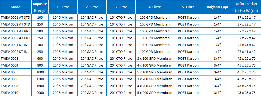 Tezgah Altı Reverse Osmosis Sistemleri, evlerde şebeke veya kuyu sularından içme suyu elde etmek amacı ile kullanılan ve genellikle mutfakta tezgah altında monte edilen kompakt içme suyu arıtma sistemleridir. Kartuş filtrelerin kirlendikçe yenileri ile değiştirilmeleri gerekmektedir. Kartuş filtrelerin yaklaşık değişim süreleri 3 ay ile 6 ay, membranın ise yaklaşık 1 ila 2 yıl olup, değişim süreleri beslenen suyun kalitesine bağlı olarak değişiklik göstermektedir.